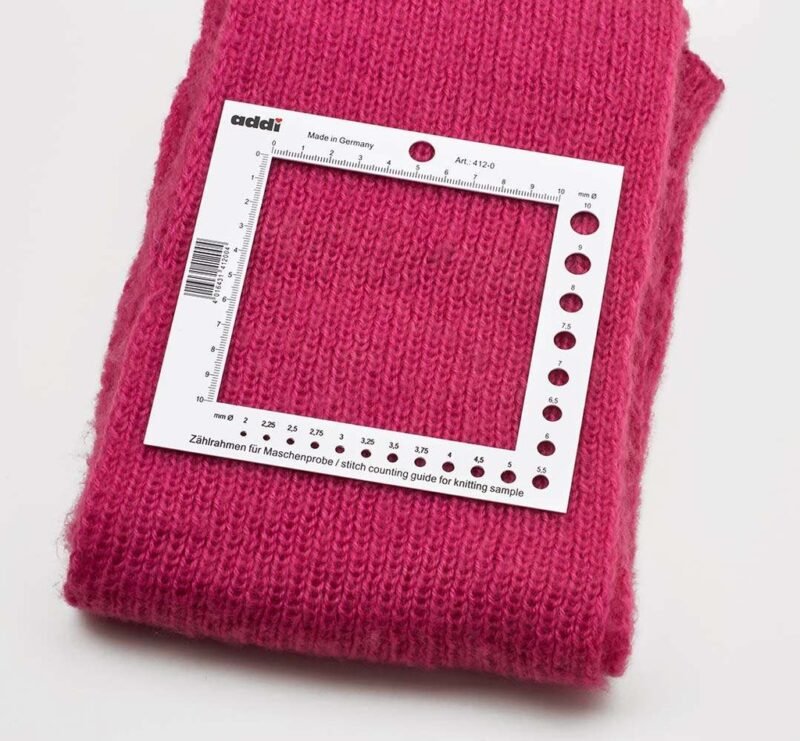 Unerlässlich für die Maschenprobe. Mit diesem großen Nadelmaß lassen sich sowohl die Nadelstärke als auch die Maschenreihen messen.