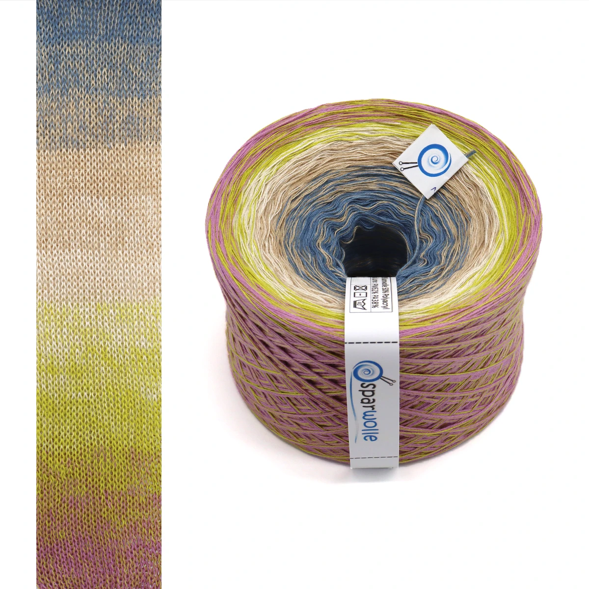 Farbverlaufsgarn mit 50% Baumwolle, geeignet für ganzjähriges Stricken oder Häkeln. Ideal für eine Vielzahl von Projekten: Dreieckstücher, Schals, Mützen, Oberteile, Pullover…