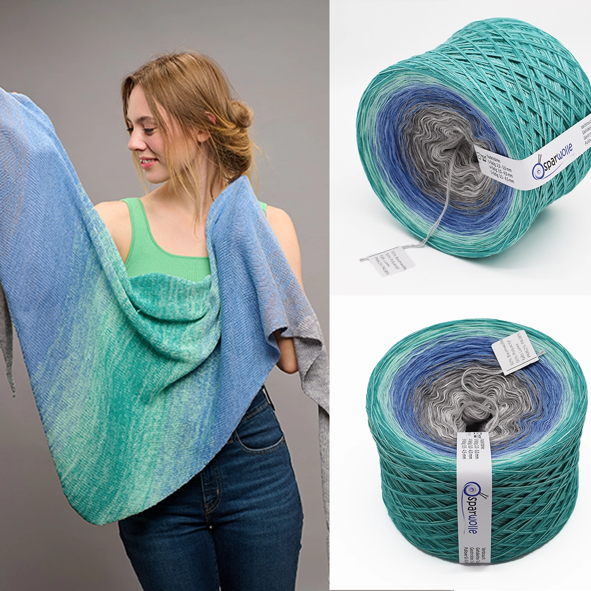 Farbverlaufsgarn mit 50% Baumwolle, geeignet für ganzjähriges Stricken oder Häkeln. Ideal für eine Vielzahl von Projekten: Dreieckstücher, Schals, Mützen, Oberteile, Pullover…