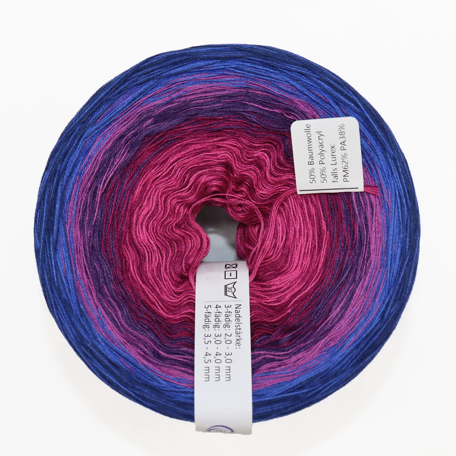 Farbverlaufsgarn mit 50% Baumwolle, geeignet für ganzjähriges Stricken oder Häkeln. Ideal für eine Vielzahl von Projekten: Dreieckstücher, Schals, Mützen, Oberteile, Pullover…