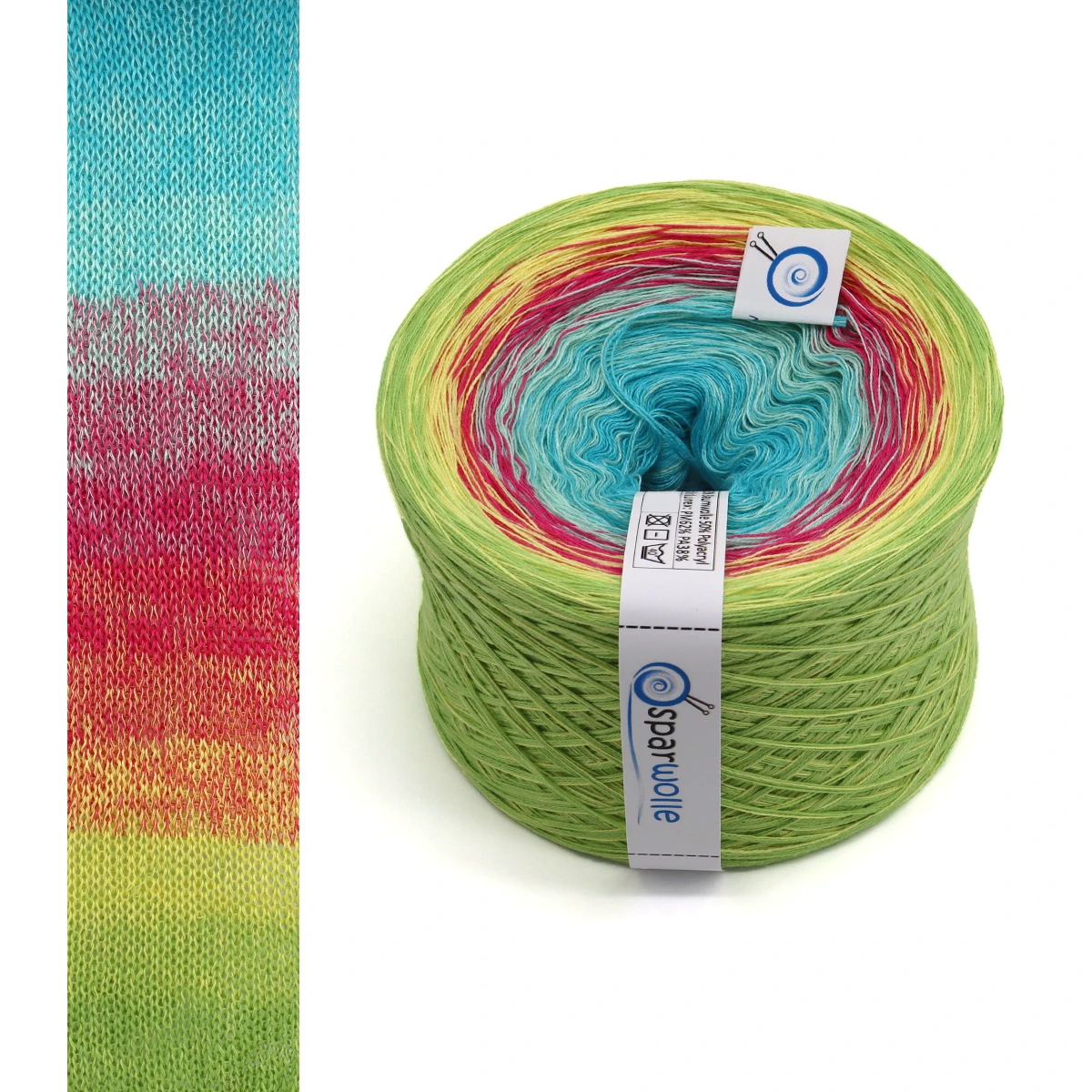 Farbverlaufsgarn mit 50% Baumwolle, geeignet für ganzjähriges Stricken oder Häkeln. Ideal für eine Vielzahl von Projekten: Dreieckstücher, Schals, Mützen, Oberteile, Pullover…