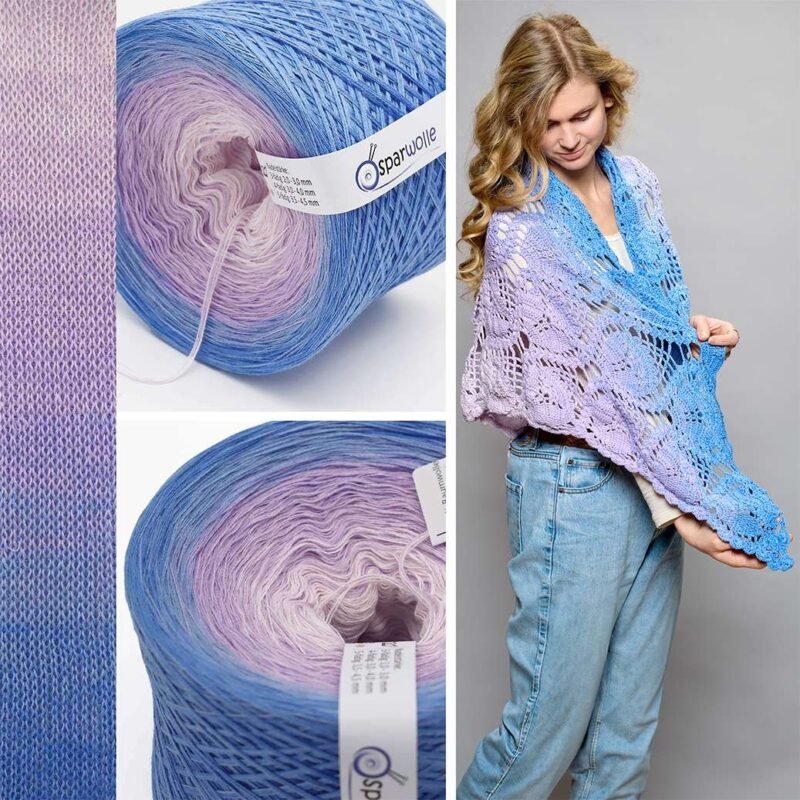 Farbverlaufsgarn mit 50% Baumwolle, geeignet für ganzjähriges Stricken oder Häkeln. Ideal für eine Vielzahl von Projekten: Dreieckstücher, Schals, Mützen, Oberteile, Pullover…