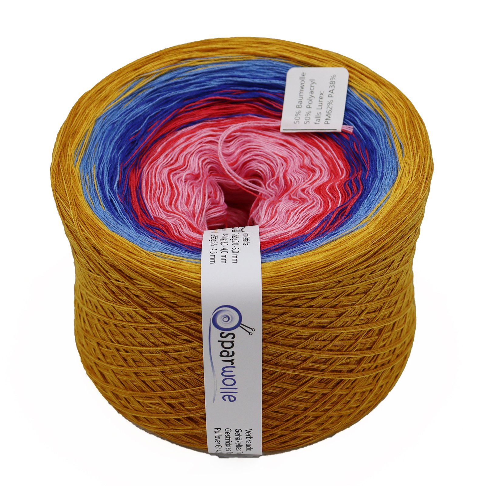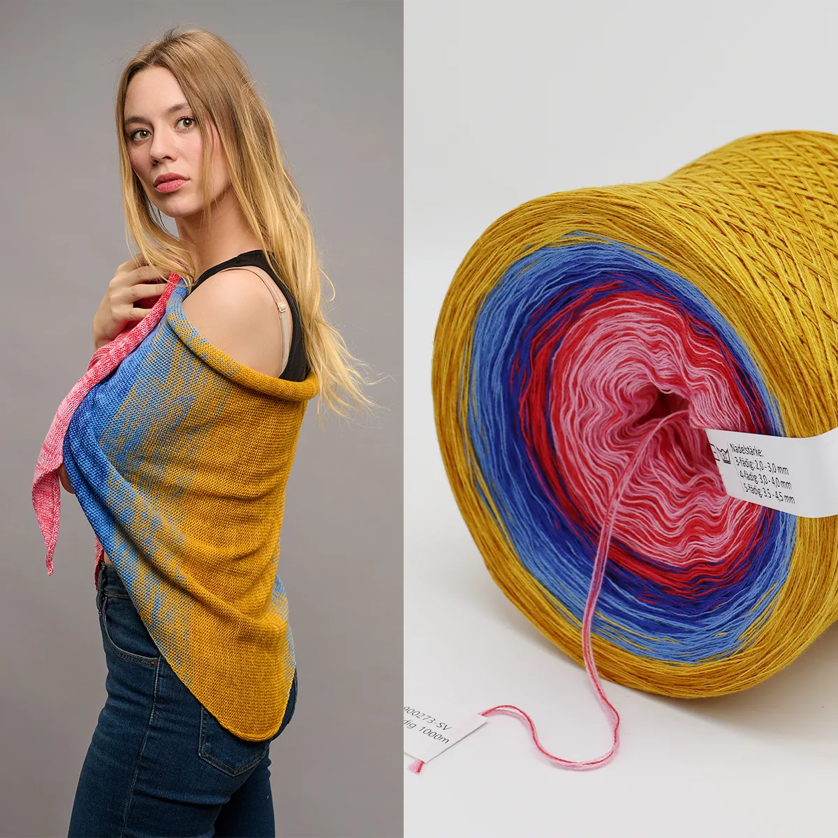 Farbverlaufsgarn mit 50% Baumwolle, geeignet für ganzjähriges Stricken oder Häkeln. Ideal für eine Vielzahl von Projekten: Dreieckstücher, Schals, Mützen, Oberteile, Pullover…