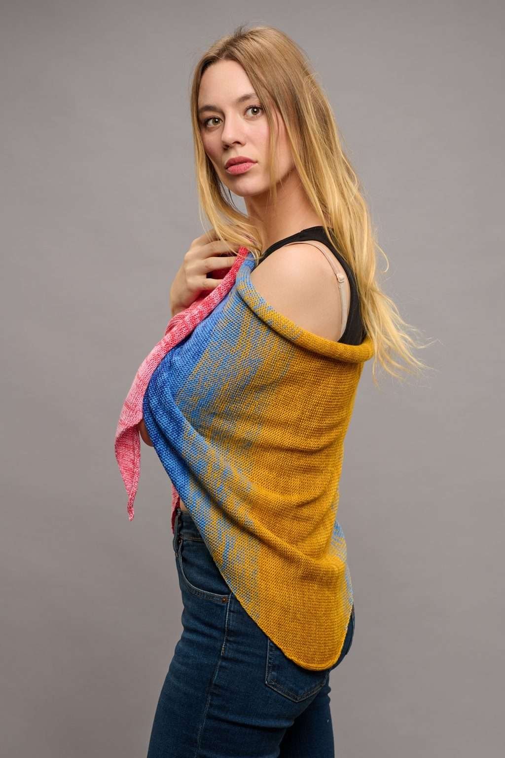 Das Tuch von den Fotos wurde aus zwei identischen Bobbeln gestrickt (2 X 4-fädig 450m). Dafür wurde an einer Ecke begonnen und jeweils bei der Hinreihe auf einer Seite zugenommen. Nach dem Wechsel zum zweiten Bobbel wurde jeweils bei der Hinreihe auf derselben Seite abgenommen.