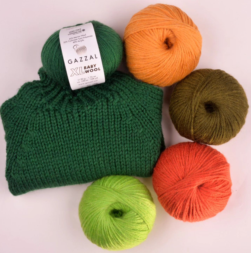 Gazzal Baby Wool XL ist ein hochwertiges, besonders weiches Garn, das speziell fรผr empfindliche Haut entwickelt wurde. Mit einem optimalen Mix aus Merinowolle, Acryl und Polyamid bietet es angenehme Wรคrme, ohne zu kratzen โ perfekt fรผr Baby- und Kinderkleidung sowie hautnahe Strickstรผcke fรผr Erwachsene.