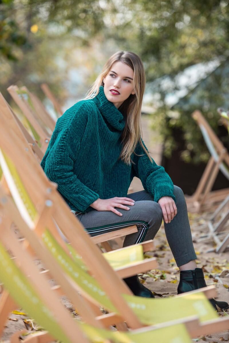• Strickstück hat eine samtartige, pelzige Oberfläche