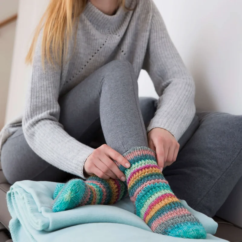 • strapazierfähiges, maschinenwaschbares Sockengarn