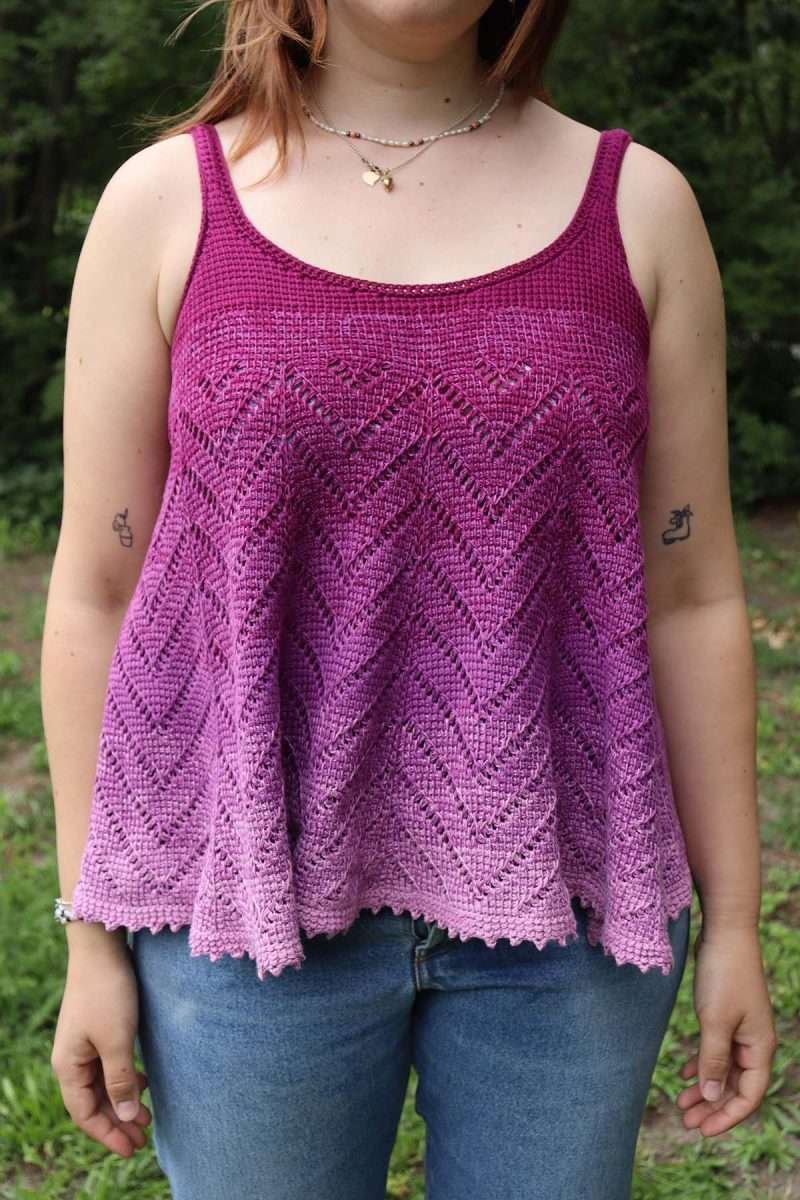 Es handelt sich hier um eine Anleitung für ein tunesisch gehäkeltes Sommertop.