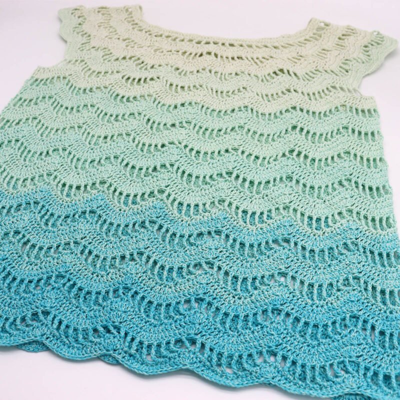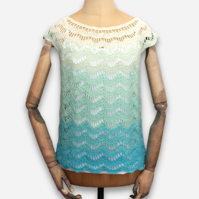 Diese Anleitung ist fรผr unser gehรคkeltes Top โSeaWindโ. Er ist mit unserem 3-fรคdigen Bobbel gehรคkelt.
