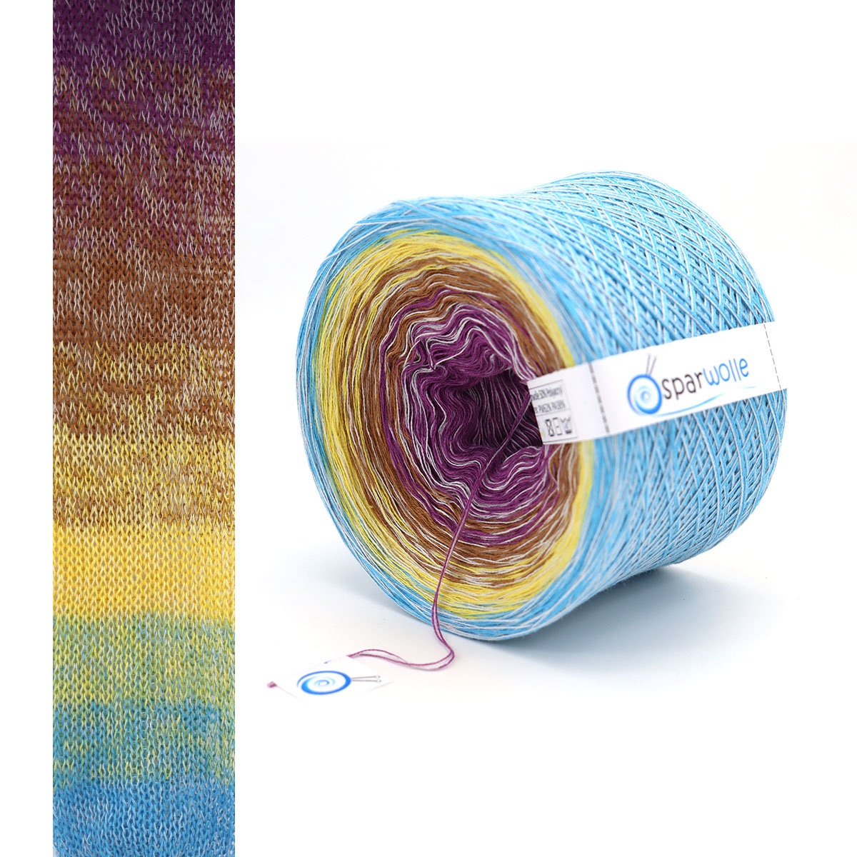 Farbverlaufsgarn mit 50% Baumwolle, geeignet für ganzjähriges Stricken oder Häkeln. Ideal für eine Vielzahl von Projekten: Dreieckstücher, Schals, Mützen, Oberteile, Pullover…
