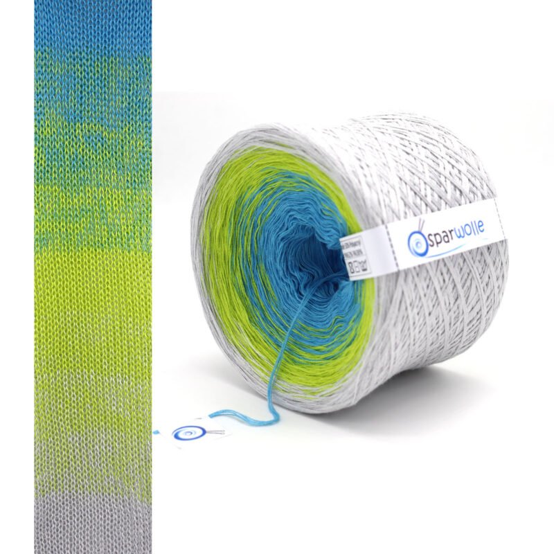 Farbverlaufsgarn mit 50% Baumwolle, geeignet für ganzjähriges Stricken oder Häkeln. Ideal für eine Vielzahl von Projekten: Dreieckstücher, Schals, Mützen, Oberteile, Pullover…