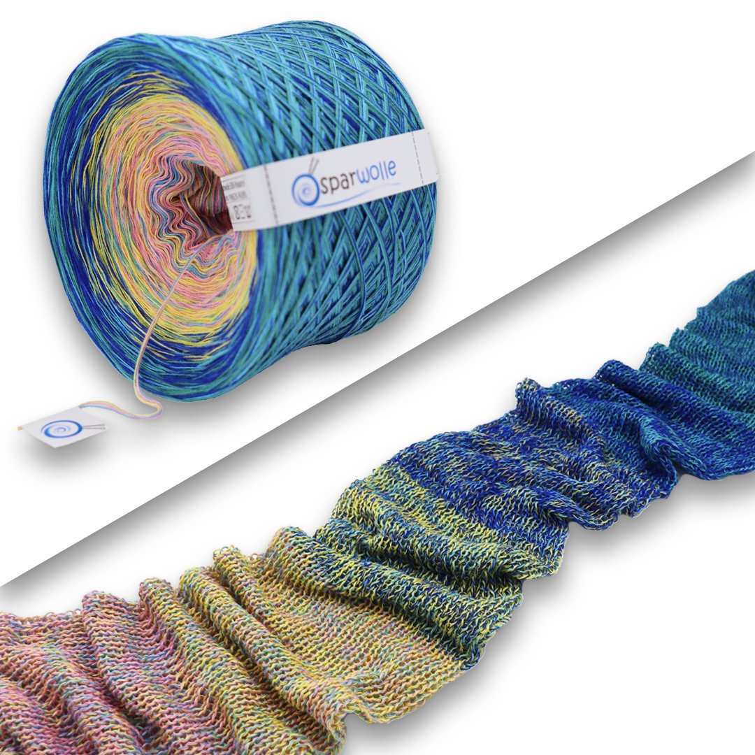 Farbverlaufsgarn mit 50% Baumwolle, geeignet für ganzjähriges Stricken oder Häkeln. Ideal für eine Vielzahl von Projekten: Dreieckstücher, Schals, Mützen, Oberteile, Pullover…