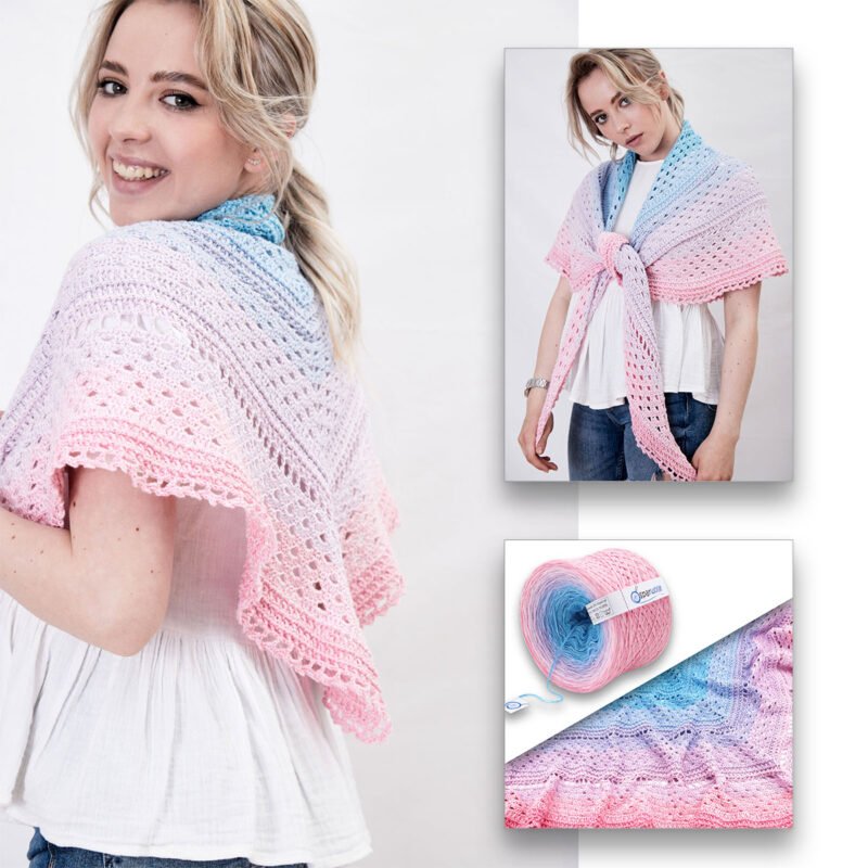 Farbverlaufsgarn mit 50% Baumwolle, geeignet für ganzjähriges Stricken oder Häkeln. Ideal für eine Vielzahl von Projekten: Dreieckstücher, Schals, Mützen, Oberteile, Pullover…
