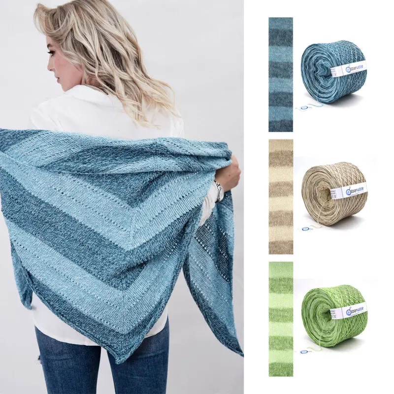 Farbverlaufsgarn mit 50% Baumwolle, geeignet für ganzjähriges Stricken oder Häkeln. Ideal für eine Vielzahl von Projekten: Dreieckstücher, Schals, Mützen, Oberteile, Pullover…