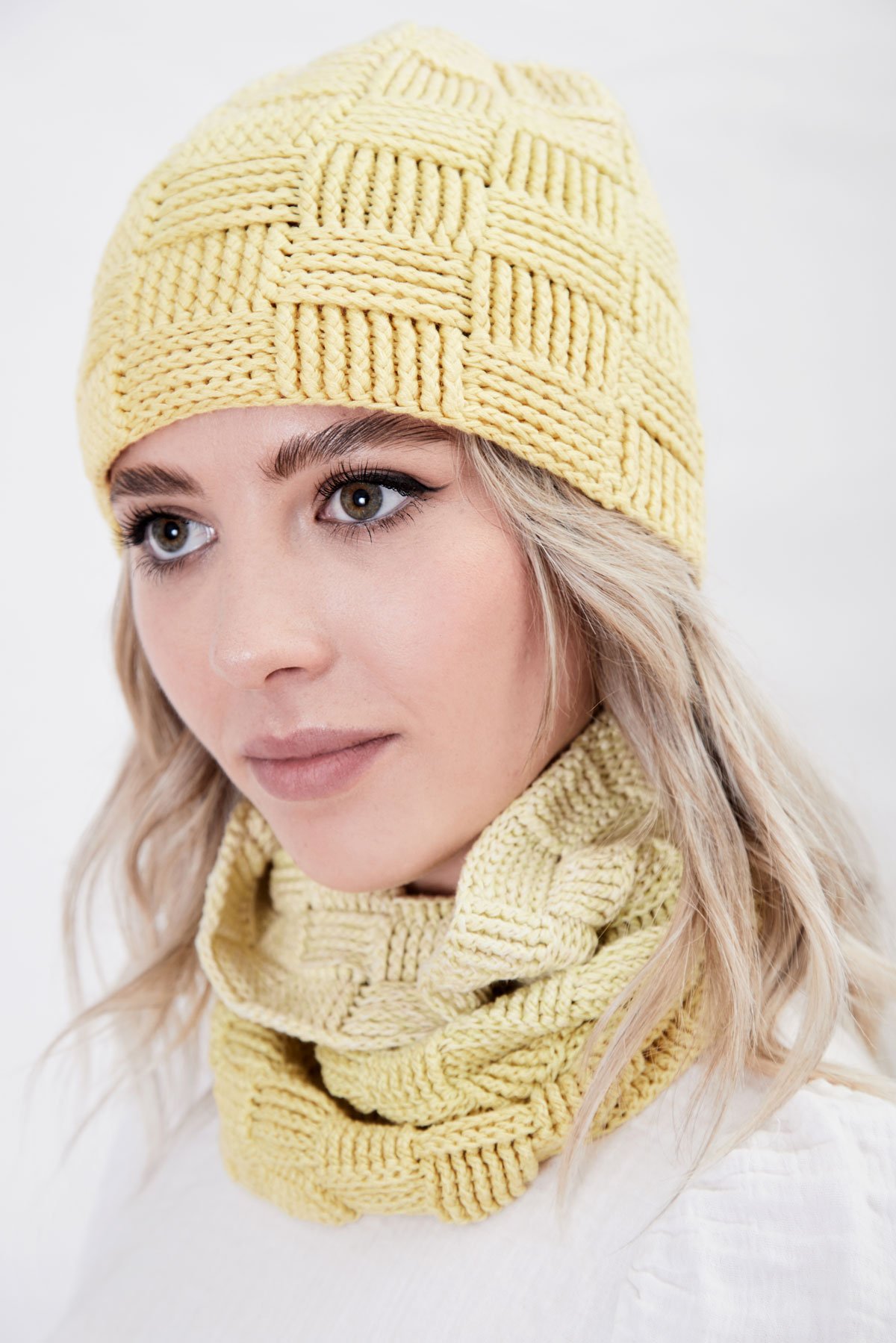 Sie wählen hier zwischen einem Set, mit dem Sie nur die Mütze häkeln können, oder mit dem Sie die Mütze und den Loop häkeln können.